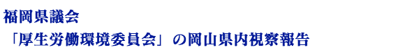 福岡県議会「厚生労働環境委員会」の岡山県内視察2日目(11/6)は、以下の通りでした。